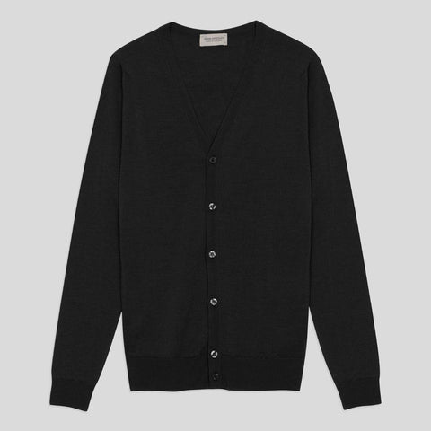PETWORTH EXTRA FINE MERINO WOOL CARDIGAN - BLACK