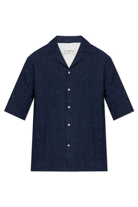 Crafted from a luxurious blend of cotton and elastane, the shirt boasts a lightweight and breathable fabric, ideal for warmer climes. The classic collar and contrasting white buttons enhance its timeless appeal, while the delicate textured pattern imbues the fabric with a unique and elegant flair.