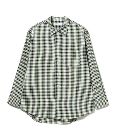 A classic shirt that offers a wide range of styling options whether tucked in or out, with a modern balance and a popular small collar shape and relaxing silhouette. The variety of textiles updated each season continues to attract fans. Following the traditional details of classic shirts like the yoke, collar width, and gauntlet, this shirt is produced at one of the top domestic factories.