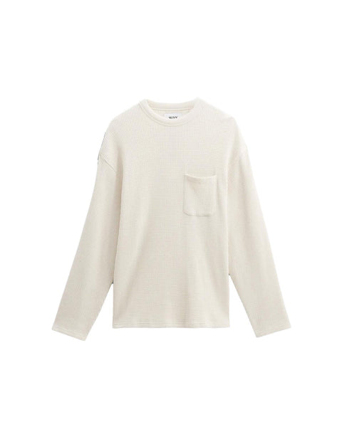 If you are looking for a long-sleeve tee with something a little extra, then the Moore is for you. Our ecru relaxed-fitting long sleeve is made from 100% organic waffle textured cotton and features a single front pocket. Because in a sea of plain tees, you need a Moore in your life.