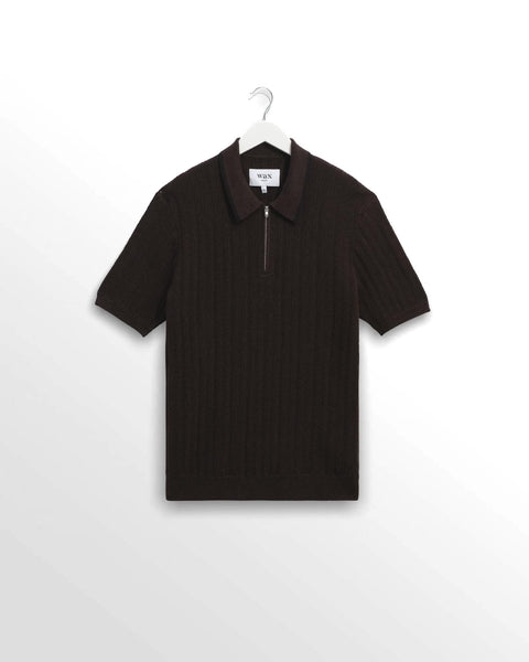 STRIPE RICE STITCH BURY ZIP POLO - DARK BROWN