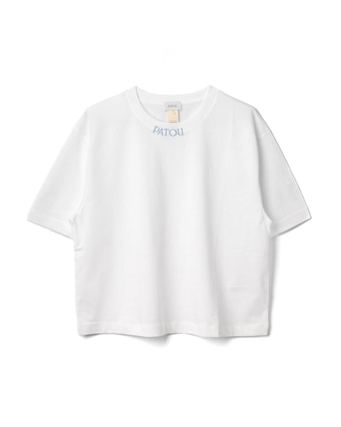 EMBROIDERED COLLAR CROPPED T-SHIRT - WHITE
