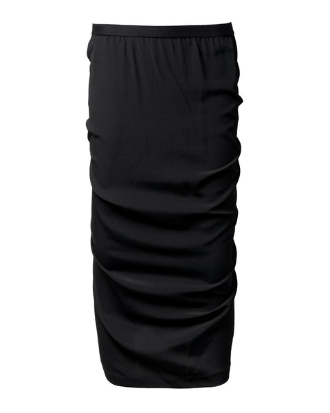 64% Acetate, 36% Silk Elasticized waistband Rib-knit panel at waist Lining at the rear.