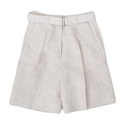 Two back welt pockets. Removable self fabric belt. Fabric developed by Officine Generale.